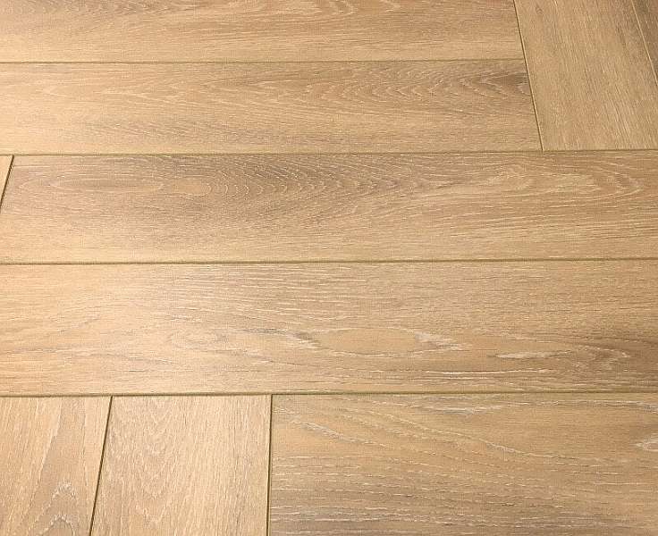 Это полностью готовое покрытие. Оно не требует финишной отделки – верхний слой с "Елочкой" рисунком прекрасно вписывается в любое оформление комнаты и хорошо смотрится со всеми настенными и потолочными материалами. Толщина доски составляет 12мм, что позволяет сделать пол прочным, устойчивым к прогибу. Ламинированная панель выдерживает большой вес мебели, на ней не остается следов от ножек и царапин. Материал хорошо держит тепло внутри помещения, не пропускает внутрь холод.