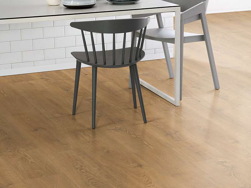 Это полностью готовое покрытие. Оно не требует финишной отделки – верхний слой с "Однополосный" рисунком прекрасно вписывается в любое оформление комнаты и хорошо смотрится со всеми настенными и потолочными материалами. Толщина доски составляет 7.5мм, что позволяет сделать пол прочным, устойчивым к прогибу. Ламинированная панель выдерживает большой вес мебели, на ней не остается следов от ножек и царапин. Материал хорошо держит тепло внутри помещения, не пропускает внутрь холод.